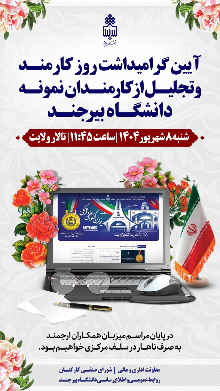 آیین گرامیداشت روز کارمند و تجلیل از کارمندان نمونه دانشگاه بیرجند ۰۵ شهریور ۱۴۰۴ | ۰۸:۳۵ کد : ۳۱۶۲۴ اطلاعیه ها اخبار کارکنان ارسال به دیگران نام شما ایمیل شما ایمیل دریافتکننده ارسال انصراف تعداد بازدید:۱۵۵۲