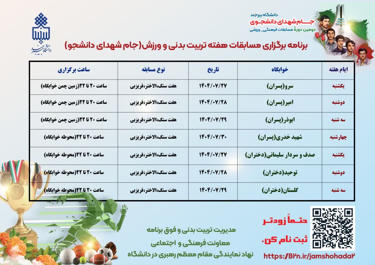 برنامه مسابقات همگانی خوابگاهی هفته تربیت بدنی و ورزش جام شهدای دانشجو