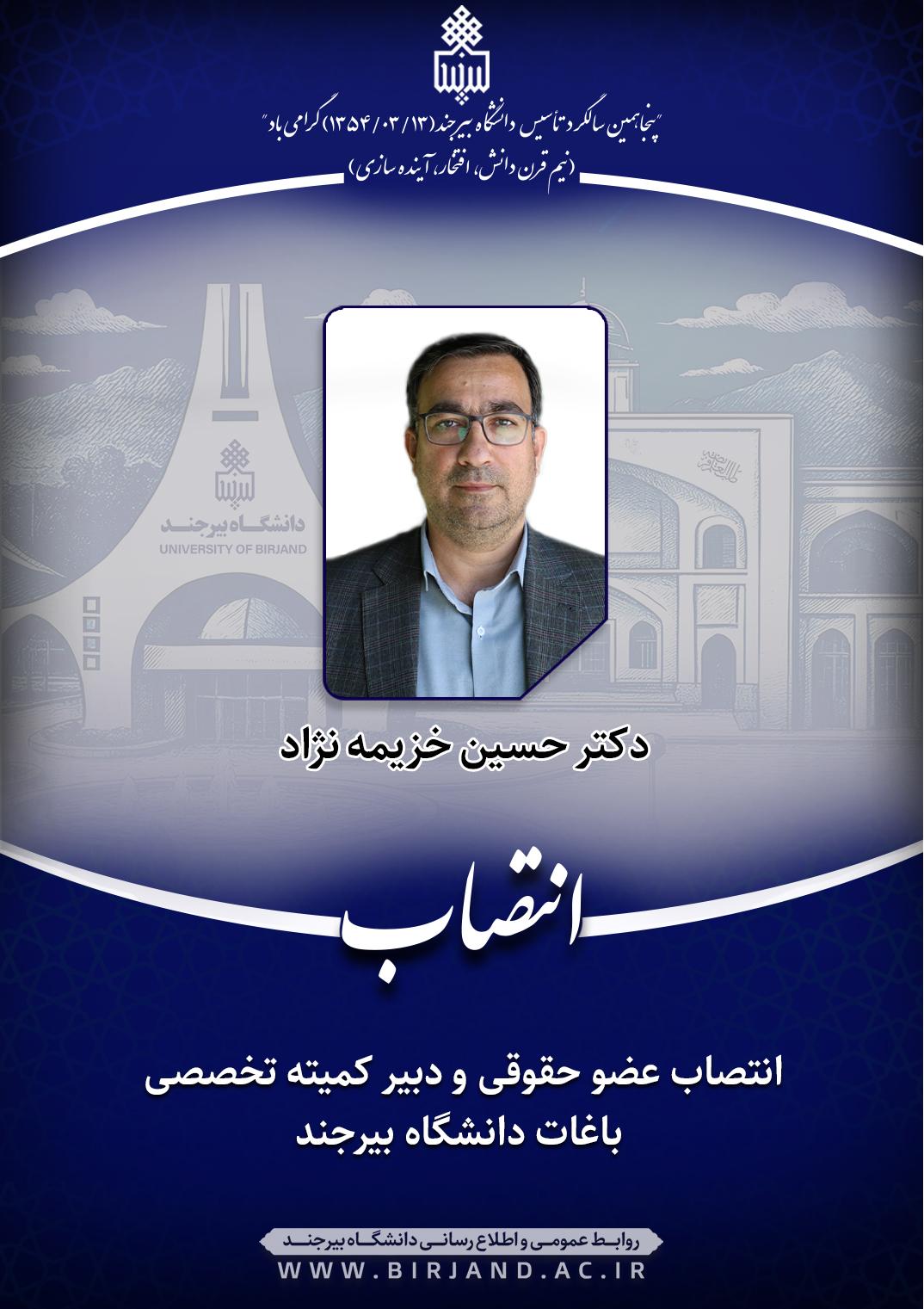 عضو حقوقی و دبیر کمیته تخصصی باغات دانشگاه بیرجند منصوب شد